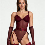 Dare to be unforgettable in the Luna's Bodysuit, a statement piece that fuses elegance, seduction, and confidence in every detail. Designed in a deep, alluring red, this one-piece bodysuit hugs your curves with a semi-sheer stretch mesh that’s both revealing and refined.